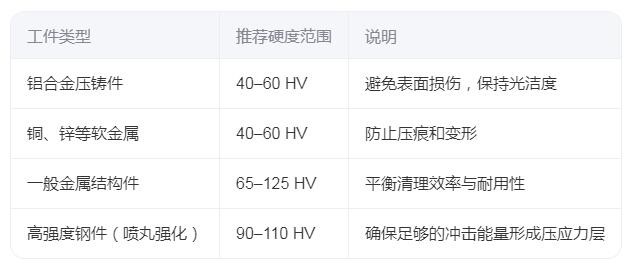 中等硬度(65–125 HV)則在清理效率與表面保護(hù)之間取得平衡,是多數(shù)工業(yè)應(yīng)用的選擇。